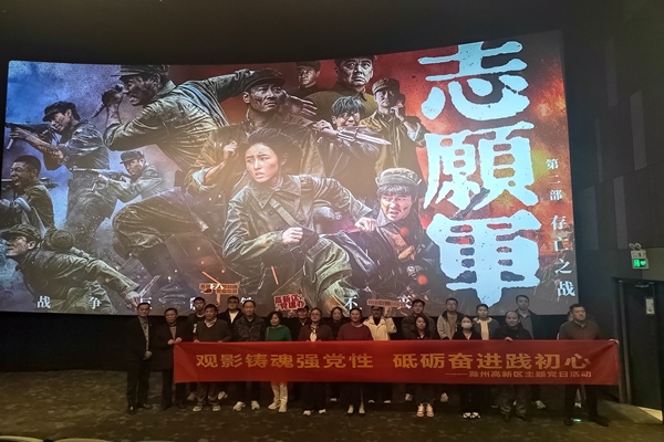 為加強愛國主義教育,銘記抗美援朝英雄歷史,傳承紅色基因,不斷增強歷史責任感和使命感,10月26日下午,滁州高新區(qū)黨工委組織開展“觀影鑄魂強黨性 砥礪奮進踐初心”主題黨日活動,邀請機關(guān)黨員干部代表、企業(yè)黨員職工代表及黨外人士代表共30余人一同觀看紅色影片《志愿軍:存亡之戰(zhàn)》。