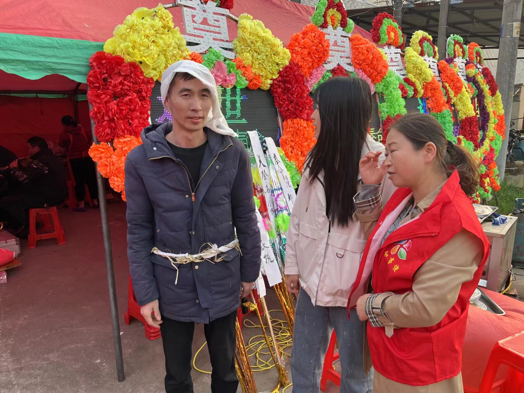 村干通過懸掛宣傳橫幅、現場講解有關移風易俗倡新風的政策,倡導殯葬文明新風,抵制喪事大操大辦行為。同時向群眾發放宣傳手冊等資料,向群眾宣傳殯葬改革有關精神和惠民政策,引導居民樹立綠色殯葬意識,倡導科學、文明、節儉的殯葬方式。