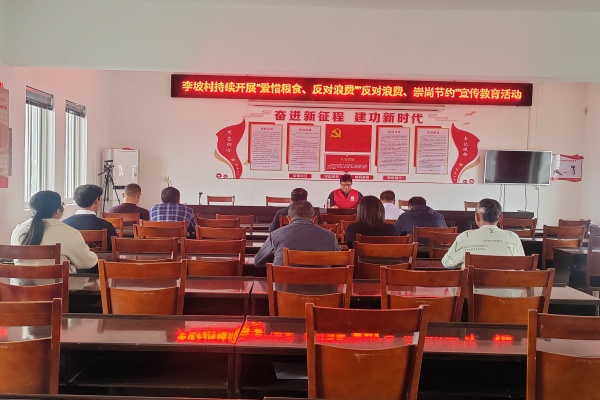 11月20日上午,李坡村在村三樓會議室開展“愛惜糧食、反對浪費、崇尚節約”宣講教育活動。