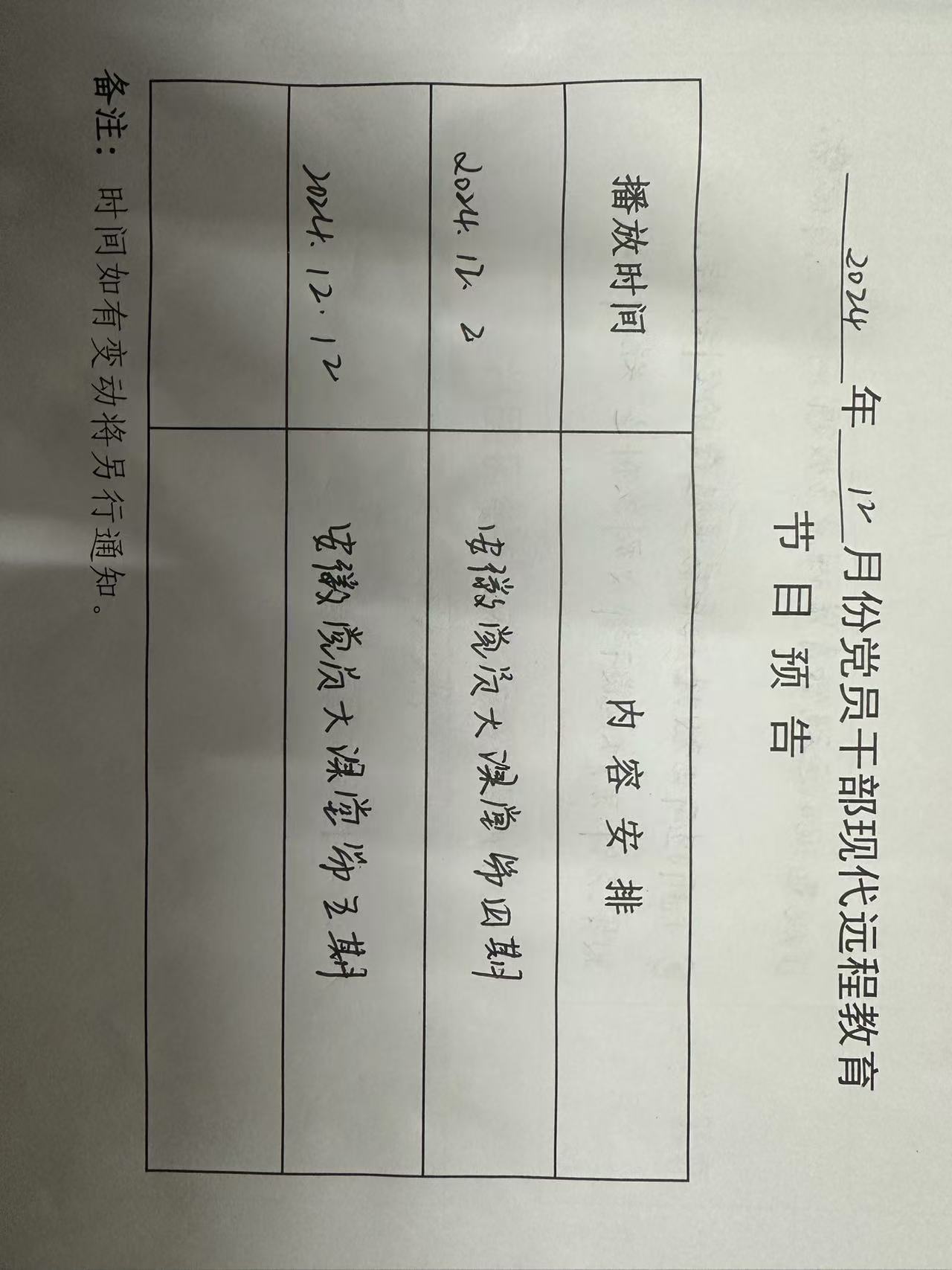銅城鎮(zhèn)蘇橋村2024年12月遠(yuǎn)程教育播放計(jì)劃如上圖所示。