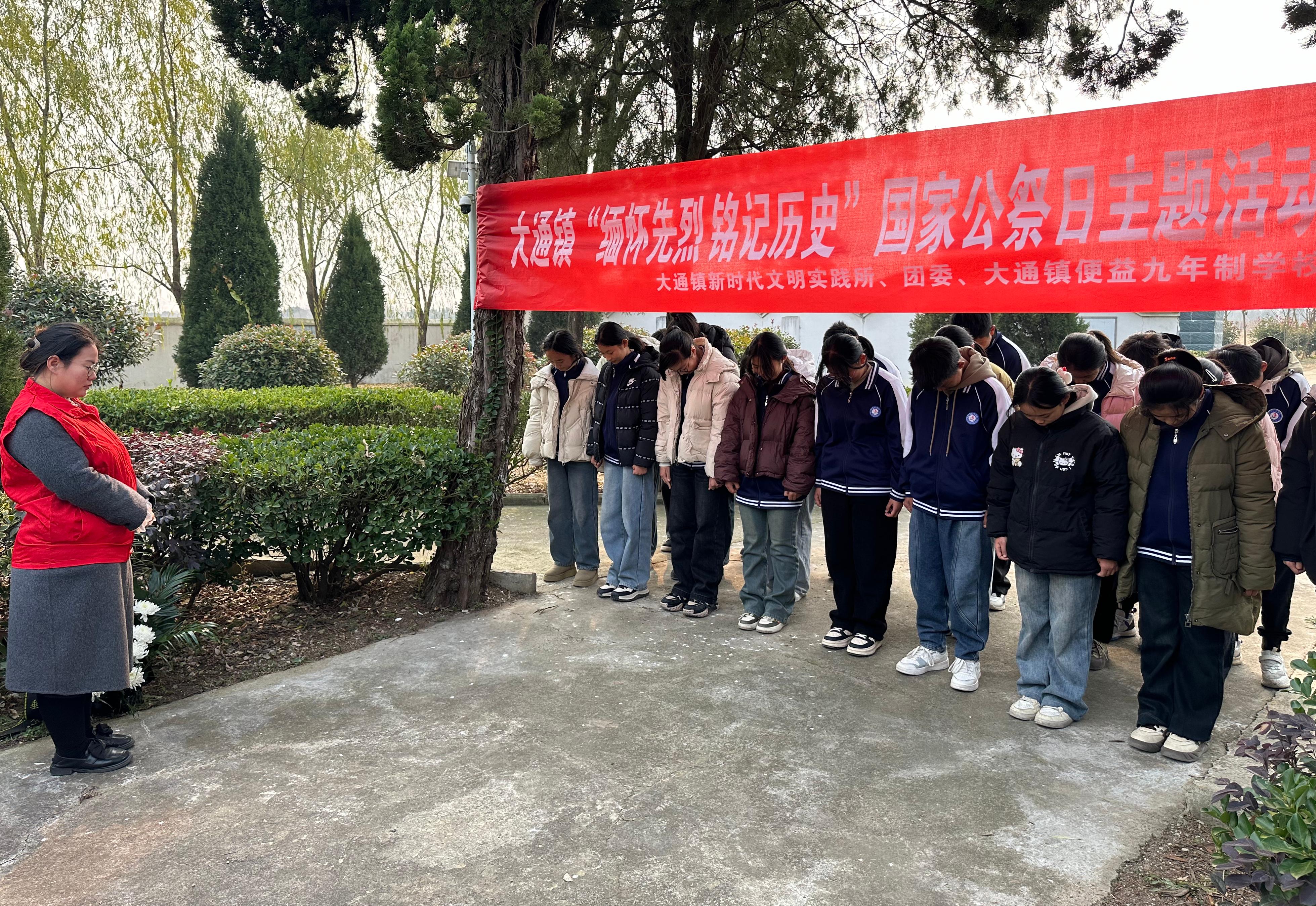 在第十一個國家公祭日來臨之際,便東村新時代文明實踐站聯合大通鎮新時代文明實踐所、團委以及便益九年制學校,開展國家公祭日主題活動祭掃儀式。