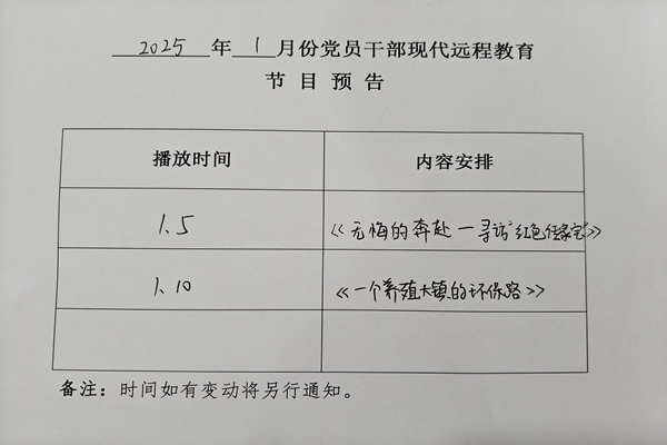 上一篇:吳莊村2024年12月份遠(yuǎn)程教育播放計(jì)劃[ 11-30 ] 下一篇:吳莊村2025年2月份遠(yuǎn)程教育播放計(jì)劃[ 01-27 ]