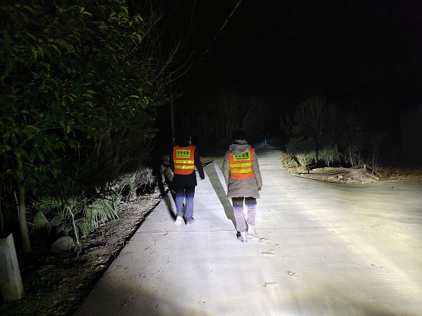 為保障村民的生命財產(chǎn)安全,近期,冶山村開展夜間治安巡邏工作。巡邏人員手持手電筒,穿梭在各個村民組之間,仔細(xì)檢查著村道的每一個角落。