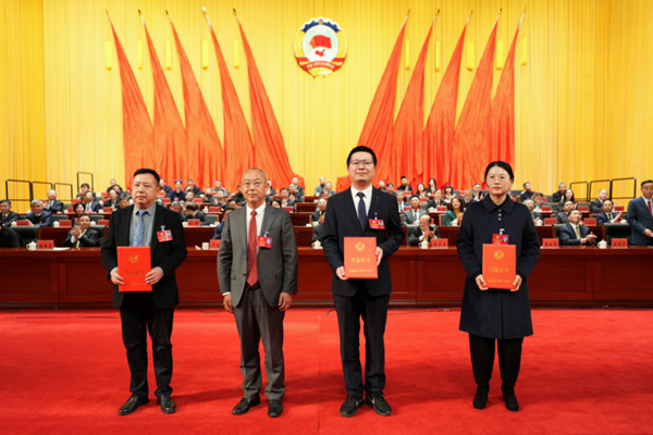 市政協主席宰正平為新當選的常務委員頒發當選證書