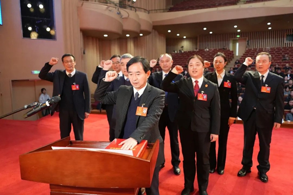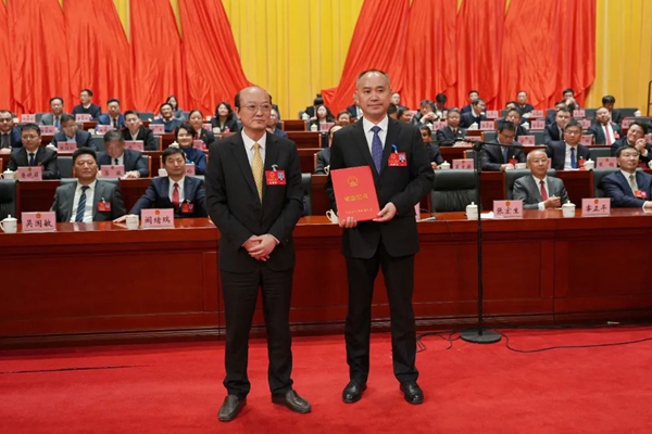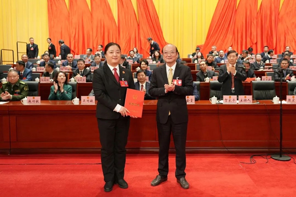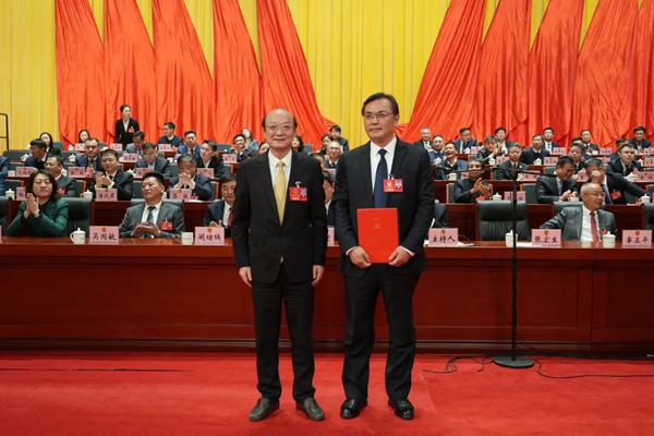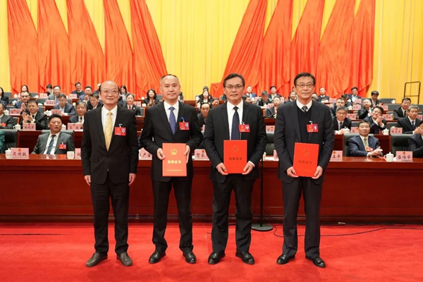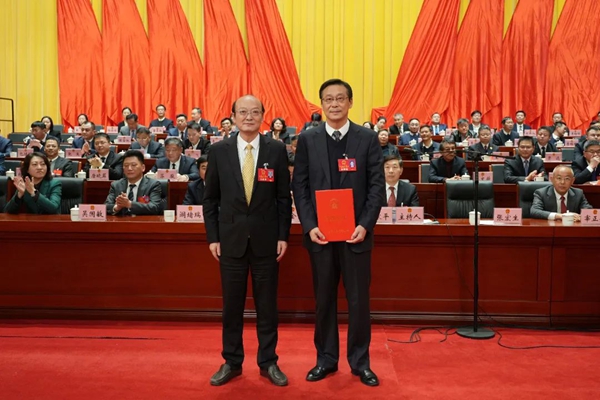新當選的市人大專門委員會主任委員到主席臺前接受當選證書