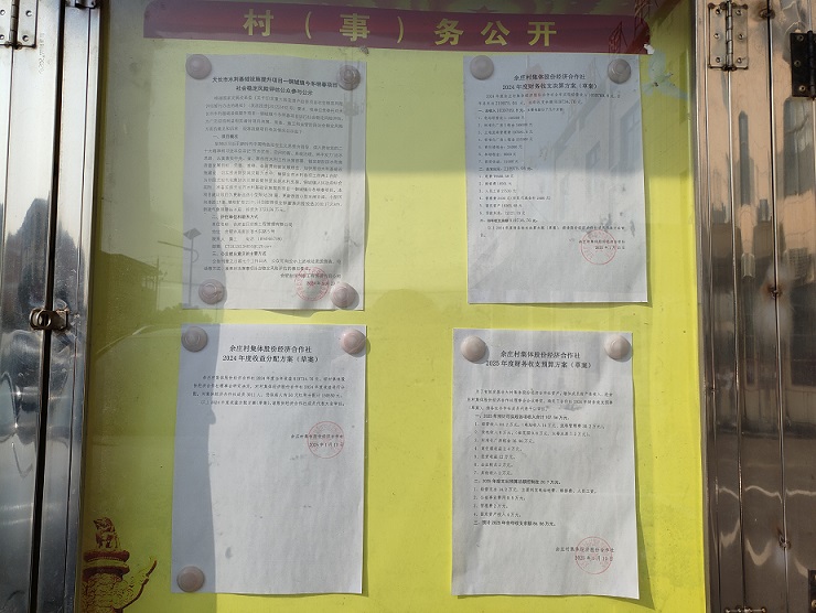 《余莊村集體股份經濟合作社2024年度財務收支決算方案(草案)》《余莊村集體股份經濟合作社2024年度收益分配方案(草案)》及《余莊村集體股份經濟合作社2025年度財務收支預算方案(草案)》公示如上圖所示。