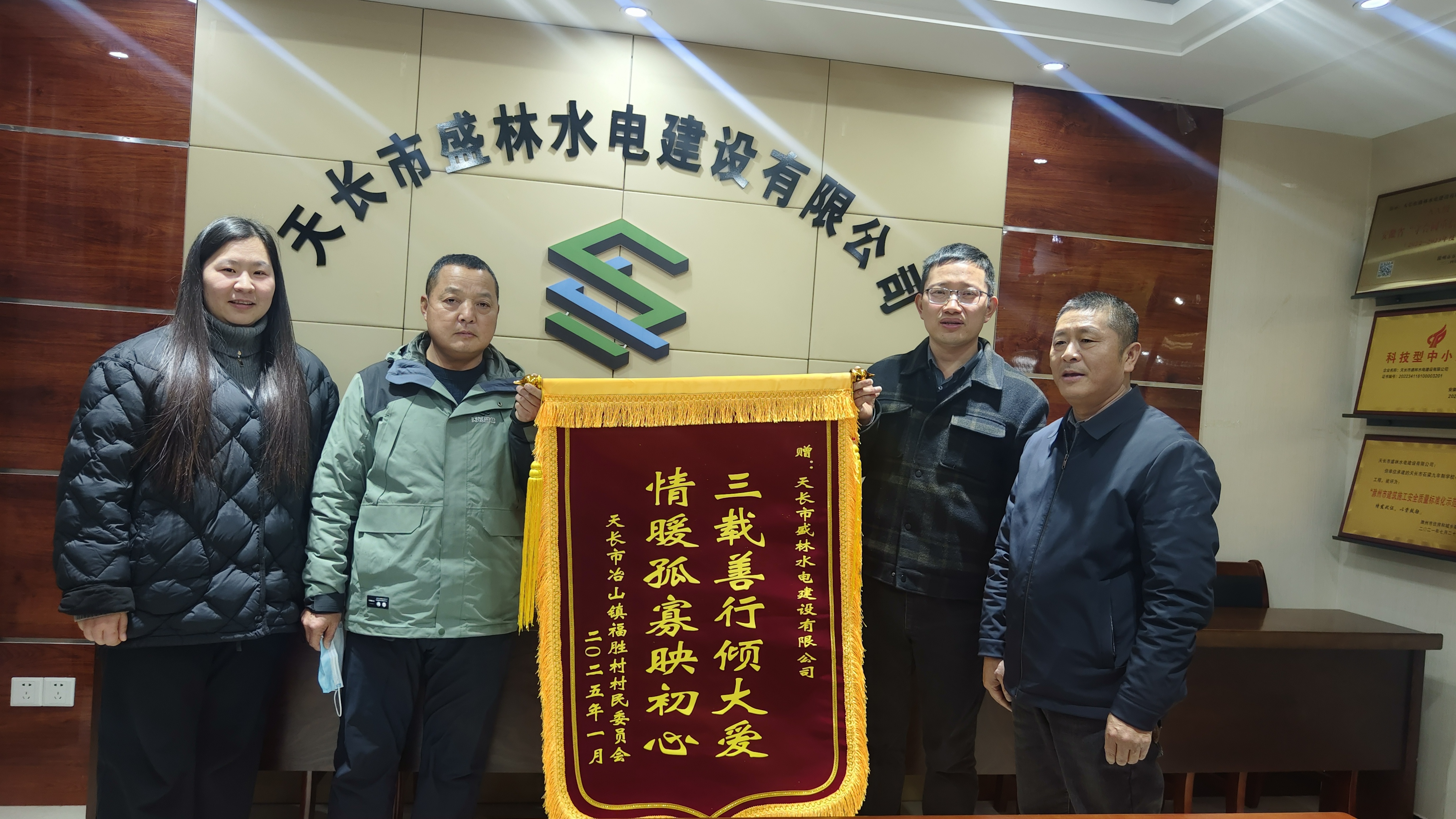 1月16日,福勝村村委會代表全村村民,將寫有“三載善行傾大愛 情暖孤寡映初心”的錦旗,鄭重地送到了天長盛林水電建設(shè)有限公司,以此表達(dá)對公司連續(xù)三年助力福勝村困難群眾的真摯感謝。