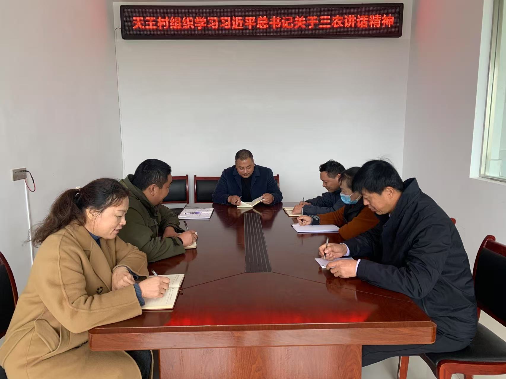 11月19日,天王村組織全體村干部在村會議室學習習近平總書記關于“三農”工作的重要講話精神。
