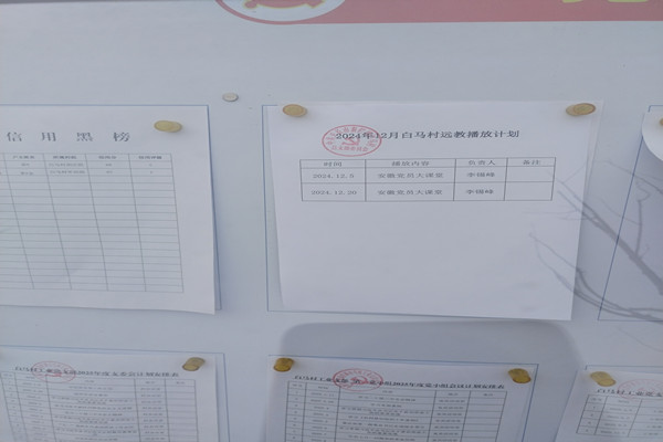 2024年12月2日,白馬村制定12月份黨員遠教播放計劃,并進行公示。