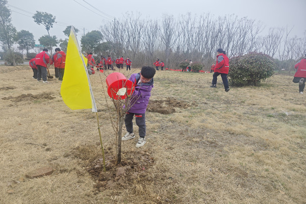 青春聚力,播種“綠色希望”。“坑要挖深一點(diǎn),樹(shù)苗扶正后再填土,澆水要澆透根系……”在鄭集鎮(zhèn)生態(tài)修復(fù)區(qū)植樹(shù)現(xiàn)場(chǎng),青年志愿者們干勁十足。揮鍬鏟土、扶苗培根、提水澆灌……大家分工協(xié)作,默契配合,一株株新栽的海棠花樹(shù)苗迎風(fēng)挺立,為初春的土地增添勃勃生機(jī)。經(jīng)過(guò)2小時(shí)的奮戰(zhàn),共栽植樹(shù)苗300余棵,荒坡披上“綠裝”,煥發(fā)盎然春意。青年志愿者小葉擦了擦額頭的汗水,笑著說(shuō):“種下的不僅是樹(shù)苗,更是對(duì)未來(lái)的希望。等樹(shù)苗發(fā)芽開(kāi)花的時(shí)候,這里一定會(huì)成為最美的風(fēng)景線!”