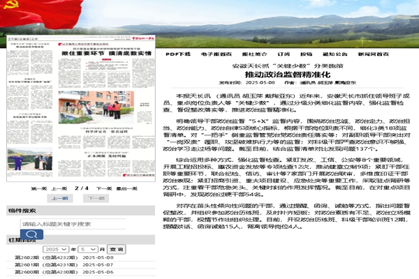 近年來,安徽天長市抓住領導班子成員、重點崗位負責人等“關鍵少數”,通過分級分類細化監督內容、強化監督檢查、督促整改落實等,推進政治監督精準化。