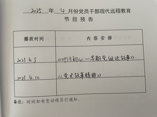 界牌社區(qū)2025年4月份遠(yuǎn)程教育播放計(jì)劃為《叩問初心——早期黨組織故事》和《黨史故事精粹》