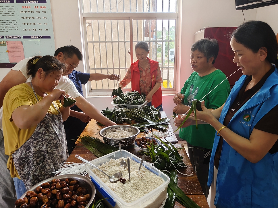 隨著鍋里的水咕嚕嚕地沸騰,陣陣粽香飄散開來。當熱氣騰騰的粽子出鍋后,志愿者們將這些飽含著愛意的粽子送到每一位老人手中,還為老人們送上了精心準備的節日禮品。老人們吃著香甜的粽子,臉上洋溢著幸福的笑容,拉著志愿者們的手,不停地說著感謝的話語。