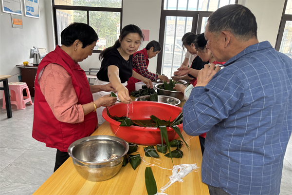 “包粽子的糯米一定要壓實,繩子一定要扎緊,否則粽子在煮著煮著就散了。就像黨員干部要時刻以紀律的紅線約束自己,踏實作風,守住底線,才能不負黨的教誨,不負人民的希望。”官橋社區村級紀檢委員常華昌邊包粽子邊與大家分享。
