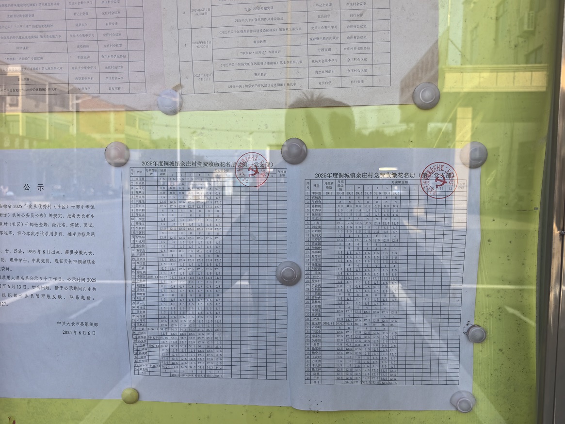 銅城鎮余莊村2025年1-6月的黨員黨費收繳情況如上圖所示。