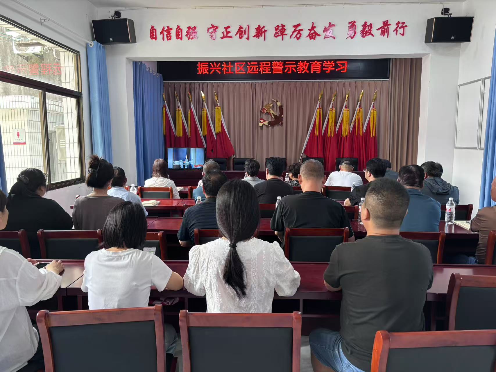 2025年6月6日上午,振興社區召開黨員大會并組織黨員觀看遠程警示教育片,加強警示教育學習,強化黨員紀律意識,筑牢思想防線。