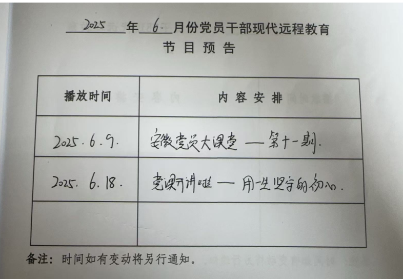 銅城鎮聯圩村2025年6月遠程教育播放計劃如上圖所示。