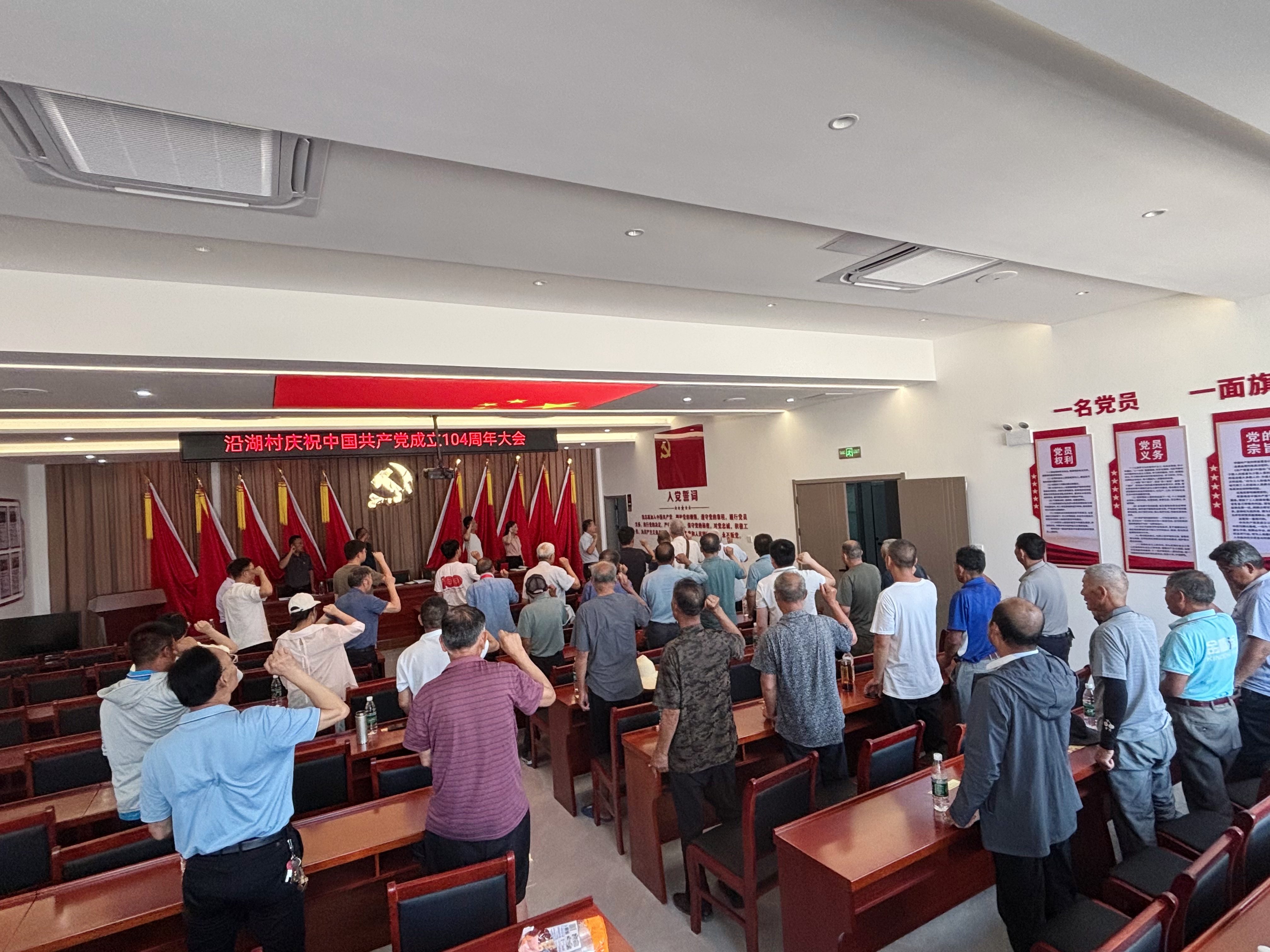 7月1日,沿湖村召開慶祝中國共產黨成立104 周年大會。村黨總支成員、全體黨員參加活動。