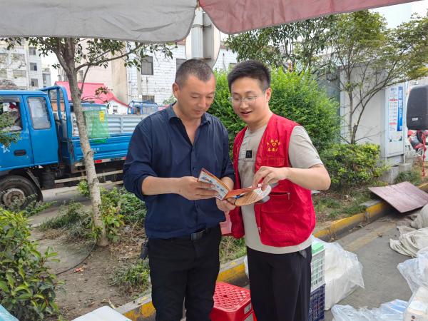 隨后普法志愿者走進農產品售賣區域,向攤位經營者們發放了《民法典》宣傳手冊,針對商戶們經營中的高頻法律需求,普法志愿者結合生動案例,詳細講解了《民法典》中關于合同訂立履行、產品質量責任、債務糾紛處理等與經營活動息息相關的法律條文,并現場接受商戶們的法律咨詢,耐心解答其在日常經營中遇到的實際法律困惑。
