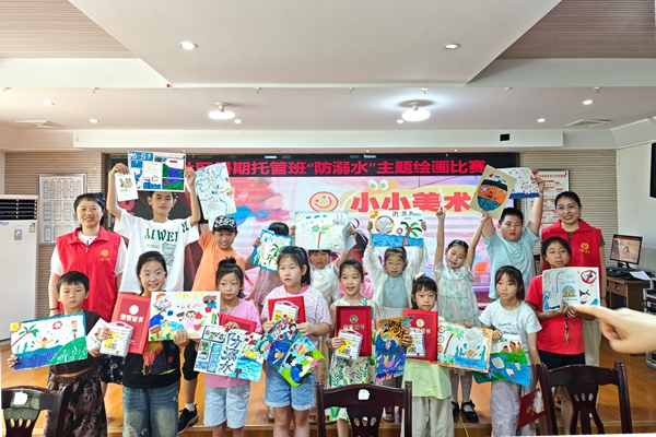 近日,在天長市廣陵街道潯河社區二樓活動室內,孩子們在志愿者的指導下認真涂鴉,精彩的防溺水主題美術課程給孩子們的暑假生活增添了幾分色彩。