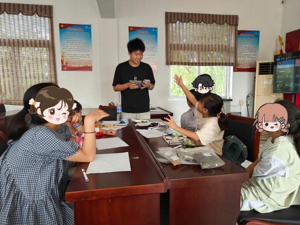 大學生志愿者們帶著準備好的手工材料,耐心指導孩子們制作手工香囊、大風車等童年手工,每一步都細致入微。孩子們睜大小眼睛,認真跟著步驟操作,小手雖然稚嫩,但藏著大大的創造力,在這一來一往的互動中,知識與溫暖同步傳遞,小小的手工桌,成了夢想發芽的地方。這不僅是手工課堂,更是青春與童真的雙向奔赴,志愿者們要用行動告訴孩子們:這個暑假,有人陪你一起成長。