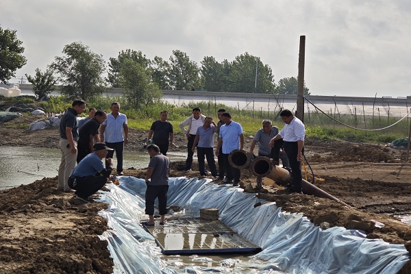 “再加快些進度,這抽水管道早一點架好,莊稼就早一點喝上水!”在村邊的河塘旁,村干部一邊擦著額頭的汗,一邊給施工的村民們加油鼓勁。烈日下,十幾名村民分工明確,有的鋪設電纜,有的對接抽水管道,大家顧不上曬得黝黑的皮膚和濕透的衣衫,專注于手上的活計。