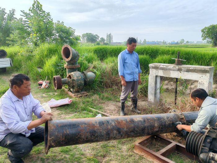 抗旱期間,黨員干部沖鋒在前,組成3支“抗旱突擊隊”,24小時巡查機站、維修設備。為確保抽水機正常運轉(zhuǎn),突擊隊不畏艱難險阻日以繼夜始終堅持在抗旱一線。