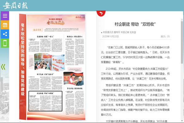 2024年起,天長市啟動“村企聯(lián)建聚合力 共富工坊促振興”三年行動,以黨建為引領(lǐng)、產(chǎn)業(yè)為紐帶,通過建強(qiáng)組織堡壘、拓寬發(fā)展路徑、優(yōu)化服務(wù)保障,讓“共富工坊”在鄉(xiāng)村落地生根。