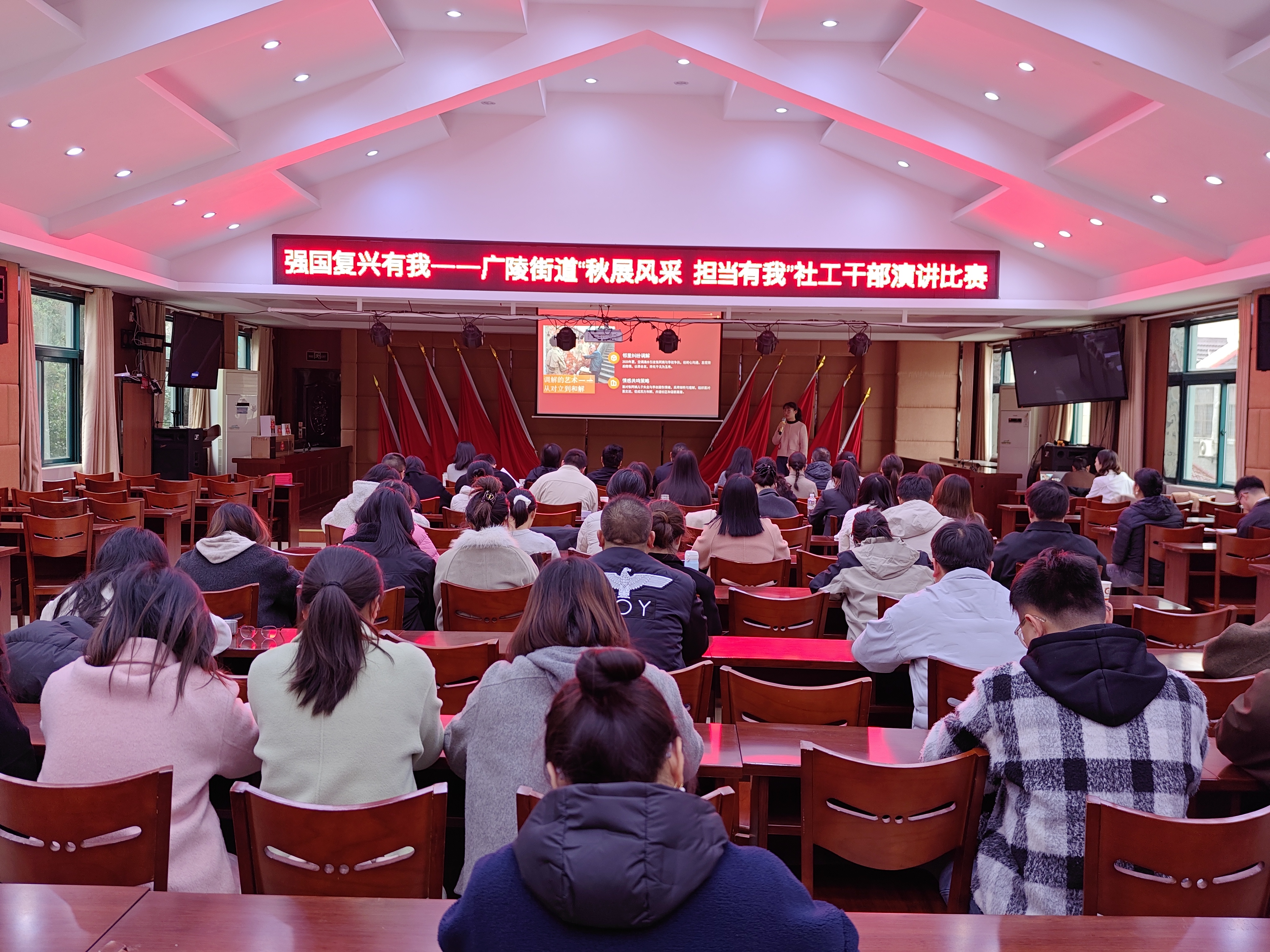 為激發社工干部工作熱情,展現基層治理良好風貌,搭建展示自我與交流學習的平臺。11月17日,廣陵街道“秋展風采?擔當有我”社工干部演講比賽在街道后二樓會議室隆重舉行。